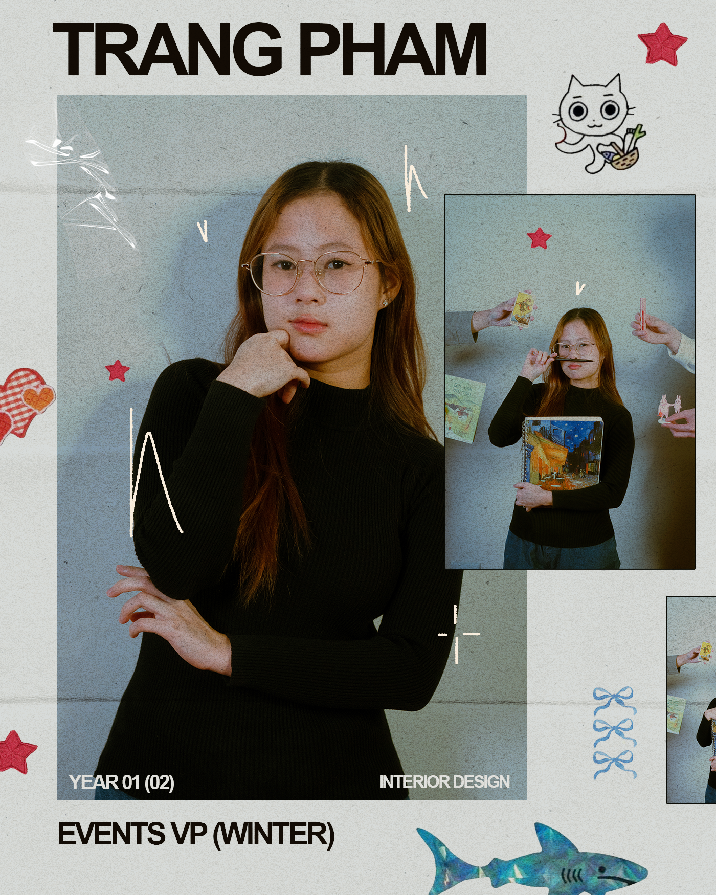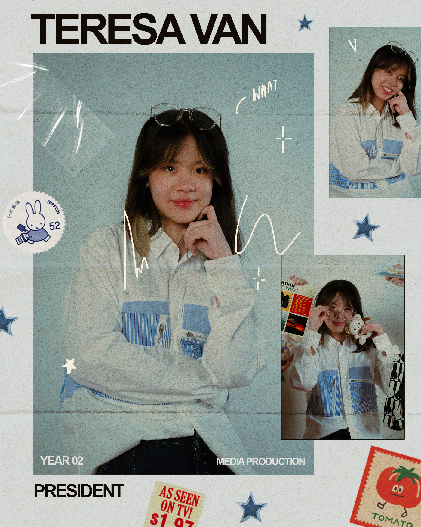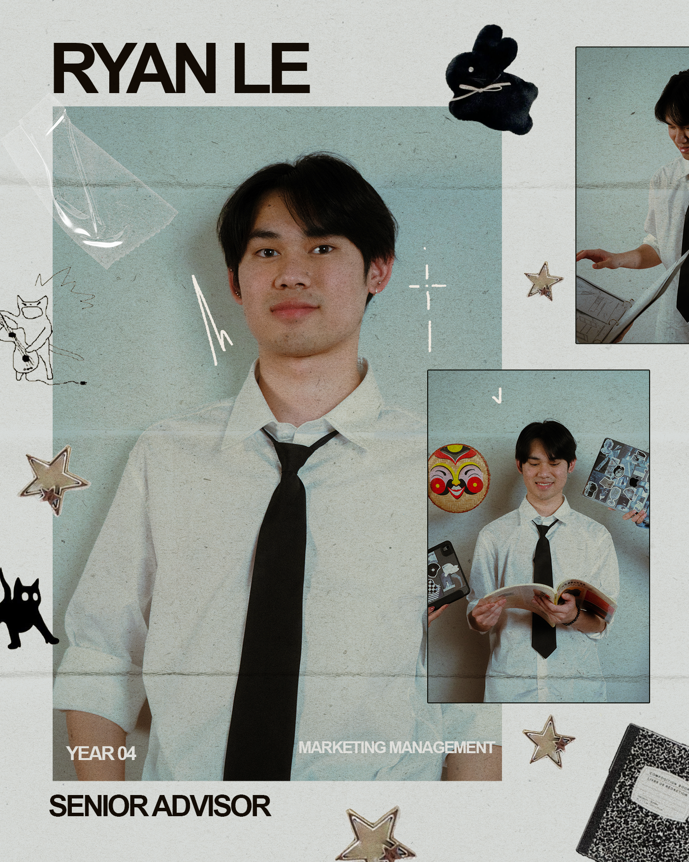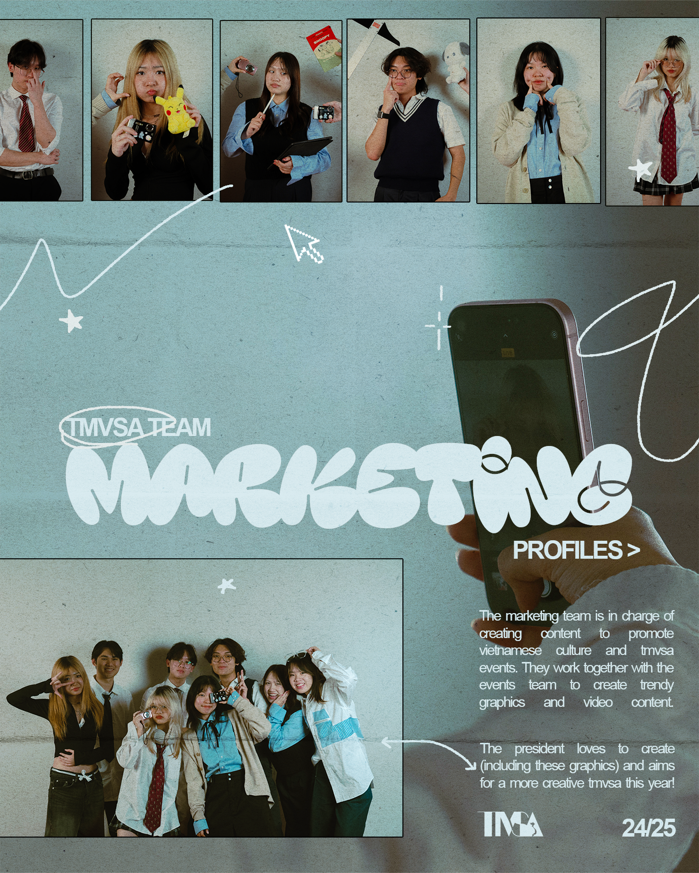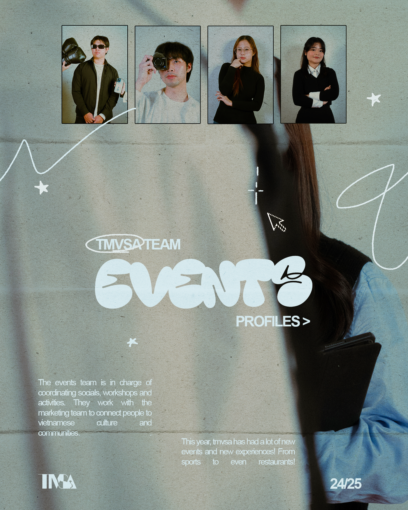From planning the mood board to shooting the photos and editing, I designed magazine pages for each TMVSA member.